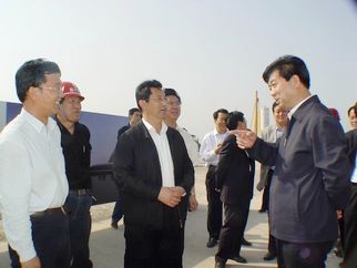 2008年5月5日下午,許立全市長視察建設中的奧體中心工程。董事長徐鵬強(上圖左一)陪同視察。 |