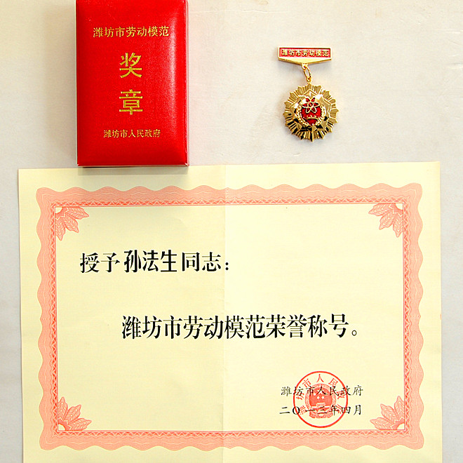 2013年4月27日上午,濰坊市委、市政府在市工人文化宮隆重召開(kāi)濰坊市慶祝“五•一”國(guó)際勞動(dòng)節(jié)暨勞動(dòng)模范命名表彰大會(huì),授予全市各行各業(yè)182名同志“濰坊市勞動(dòng)模范”榮譽(yù)稱號(hào),77名同志“濰坊市先進(jìn)工作者”榮譽(yù)稱號(hào)。集團(tuán)公司機(jī)械化施工分公司安拆班長(zhǎng)孫法生榮獲“濰坊市勞動(dòng)模范”榮譽(yù)稱號(hào)。