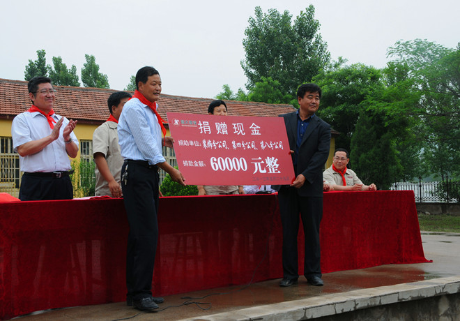2013年5月29日上午,由裝飾分公司發(fā)起并聯(lián)合第四、第八分公司共同實施的員工為留守兒童捐建午餐食堂捐贈儀式在臨朐縣寺頭鎮(zhèn)春蕾小學舉行。三個捐建單位的領導班子成員和員工代表參加了捐贈活動。集團公司對員工自發(fā)組織的這項活動給予了充分肯定和積極支持,監(jiān)事會主席、黨委副書記、紀委書記滕忠斌出席捐贈活動并在儀式上講話。集團公司辦公室副主任、駐臨朐幫扶工作領導小組成員兼臨朐寺頭鎮(zhèn)大崮東村第一書記徐良本,受捐贈春蕾小學的200多名師生參加上述活動。捐贈儀式由臨朐縣寺頭鎮(zhèn)黨委書記瞿志敏主持。