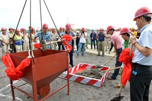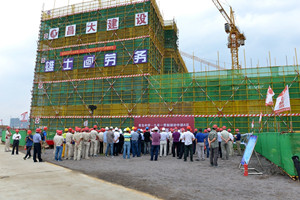 2016年9月10日上午,由集團(tuán)青島公司承建的青島中學(xué)九年一貫制部初中部A區(qū)主體結(jié)構(gòu)在所有已開項(xiàng)目中率先實(shí)現(xiàn)封頂,上午8時(shí)10分舉行了封頂儀式。這一天,恰逢教師節(jié),在這個(gè)春華秋實(shí)、碩果累累的收獲季節(jié)里,昌大人用自己的方式向教師節(jié)獻(xiàn)上了一份厚禮。集團(tuán)副總經(jīng)理閆鵬與參加封頂儀式的青島以及項(xiàng)目各方:青島市高新區(qū)黨工委委員、管委會(huì)副主任于慧霞,黨工委委員、管委會(huì)副主任呂濤,青島市高新區(qū)建設(shè)局局長蒲洪強(qiáng),北京十一學(xué)校副校長、青島中學(xué)執(zhí)行校長、青島實(shí)驗(yàn)學(xué)校校長秦建云,同濟(jì)大學(xué)建筑設(shè)計(jì)研究院項(xiàng)目負(fù)責(zé)人高增元等共同裝填封頂砼。青島市高新區(qū)管委會(huì)各部門、集團(tuán)青島公司、安裝公司、裝飾幕墻公司、第二裝飾幕墻公司、第三裝飾幕墻公司以及青島中學(xué)項(xiàng)目各參建單位負(fù)責(zé)人、員工代表參加了封頂儀式。 青島中學(xué)項(xiàng)目總建筑面積近30萬平方米,包括中學(xué)部(含國際部)、九年一貫制部、幼兒園部三個(gè)主體建筑。其中,青島公司承建九年一貫制部,總建筑面積72074平米,于2016年4月19日正式開工建設(shè)。根據(jù)高新區(qū)管委會(huì)和建設(shè)局的需要,原457天的合同工期壓縮為180天 ,時(shí)間緊、任務(wù)重。青島公司自中標(biāo)后,特別是在合同工期調(diào)整壓縮后,積極組織精兵強(qiáng)將,克服了工期緊迫、工程施工難度大、雨季施工及高溫酷暑等諸多困難,精心組織、嚴(yán)格管理,加強(qiáng)過程控制,保證了工程質(zhì)量和工期。經(jīng)過全體員工的奮力拼搏,主體于9月10日這天率先封頂,為工程的按期交付使用奠定了堅(jiān)實(shí)基礎(chǔ)。青島公司在青島市場(chǎng)彰顯了昌大作風(fēng)。 集團(tuán)承建部分率先封頂,僅僅是取得了階段性勝利,項(xiàng)目后續(xù)工程量大,施工時(shí)間緊迫,還將面臨更加艱巨的考驗(yàn)。青島公司將繼續(xù)秉承正氣做人、銳氣做事、知難而進(jìn)、團(tuán)結(jié)協(xié)作的昌大作風(fēng),克服困難,保安全、保質(zhì)量、保進(jìn)度,以扎實(shí)的工作作風(fēng),以匠人的精神,干出一項(xiàng)優(yōu)質(zhì)的工程,確保工程按期交付使用,向業(yè)主提交一份滿意的答卷。