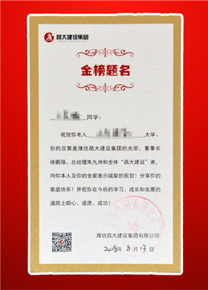 2018年8月13日,集團(tuán)通過第三方快遞的方式,向33名員工子女送達(dá)“高考及第祝愿”,其中包括徐鵬強(qiáng)董事長(zhǎng)、朱九洲總經(jīng)理的祝賀信、阿迪達(dá)斯時(shí)尚背包和步步高向陽鮮花,以表達(dá)集團(tuán)對(duì)員工子女高考及第的美好祝愿,分享這些家庭的高考及第喜悅。 今年集團(tuán)這33名高考及第員工子女,來自集團(tuán)36名員工家庭,這些員工分別是:集團(tuán)總部2人、一建公司1人、三建公司2人、四建公司1人、五建公司3人、六建公司1人、七建公司1人、八建公司2人、十建公司1人、安裝公司3人、二安公司1人、機(jī)施公司2人、第三裝飾幕墻公司1人、公管公司4人、園林公司1人、泰和公司4人、昌和檢測(cè)1人、濰坊市政公司5人。 這也是集團(tuán)連續(xù)第9年向員工子女送達(dá)高考及第祝賀,員工子女總數(shù)達(dá)到了249名。(2010年21名、2011年26名、2012年25名、2013年29名、2014年25名、2015年22名、2016年35名、2017年33名、2018年33名)。 “員工子女高考及第祝愿”活動(dòng),由集團(tuán)董事長(zhǎng)和總經(jīng)理發(fā)起,是集團(tuán)企業(yè)文化建設(shè)的重要實(shí)踐內(nèi)容,旨在構(gòu)建文明昌大和人文昌大,為集團(tuán)積累精神與智力財(cái)富。