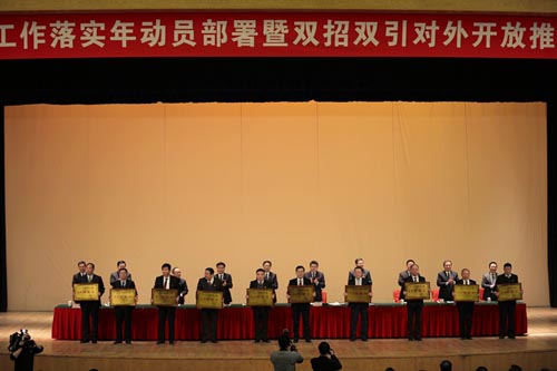 2019年2月12日上午,全市工作落實年動員部署暨雙招雙引對外開放推進會議在富華國際會議中心召開。 會上,市委書記惠新安作了重要講話,市委副書記、市長田慶盈主持會議。 市委、市人大常委會、市政府、市政協(xié)領(lǐng)導(dǎo)班子成員,市中級法院院長、市檢察院檢察長;濰坊軍分區(qū)主要負責人;市人大常委會、市政府、市政協(xié)秘書長;市紀委市監(jiān)委班子成員,市委、市政府副秘書長;市各民主黨派主要負責人;各縣市區(qū)、市屬各開發(fā)區(qū)黨政主要負責人,黨(工)委辦公室主任、組織部部長(政工部主任),發(fā)改、商務(wù)、招商部門主要負責人;市直各部門、單位和上屬駐濰單位主要負責人,市直有關(guān)部門領(lǐng)導(dǎo)班子成員;市人大、市政協(xié)各專門委員會和機關(guān)部門主要負責人;市委各巡察組組長和市紀委、市監(jiān)委各派駐機構(gòu)主要負責人;省級開發(fā)區(qū)主要負責人;有關(guān)重點企業(yè)主要負責人等參加會議。 會上,市委、市政府通報表彰了2018年度先進單位和個人,昌大集團與濰柴等企業(yè)榮獲“全市財稅貢獻50強企業(yè)”榮譽,董事長徐鵬強出席會議并代表集團受獎。