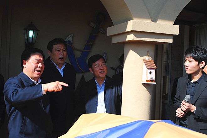 2012年10月18日上午,濰坊市委副書記、市長(zhǎng)劉曙光在市政協(xié)副主席、市經(jīng)信委主任李傳恒的陪同下,率領(lǐng)市發(fā)改委、市財(cái)政局、市規(guī)劃局、市旅游局等有關(guān)部門負(fù)責(zé)人到昌樂(lè)參觀調(diào)研卡納圣菲項(xiàng)目。昌樂(lè)縣委書記、縣人大常委會(huì)主任張新強(qiáng),縣委副書記、縣長(zhǎng)高立波陪同調(diào)研。集團(tuán)董事長(zhǎng)徐鵬強(qiáng)陪同劉曙光參觀調(diào)研并就項(xiàng)目開(kāi)發(fā)情況作了匯報(bào)。