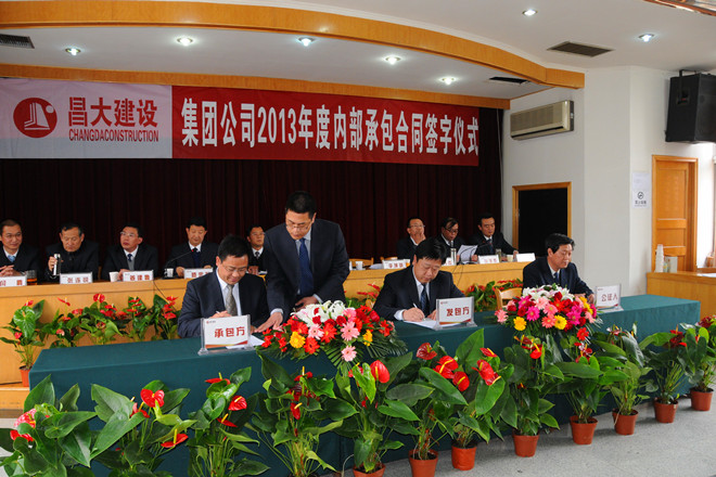 2013年4月20日下午,集團公司2013年度內部經營承包合同簽字儀式在集團總部第一會議室舉行。集團公司高管層領導徐鵬強、朱九洲、滕忠斌、李坤明、姜建魯、穆乃杰、張連悅、張學智、閆鵬、劉雁冰,17個簽約單位領導班子成員、總部部室負責人共80人參加了承包合同簽字儀式。