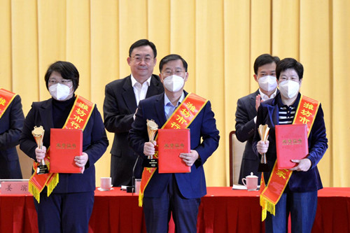 徐鵬強(qiáng)董事長(zhǎng)出席全市工作動(dòng)員大會(huì)并領(lǐng)受行業(yè)領(lǐng)軍企業(yè)家榮譽(yù)稱(chēng)號(hào)獎(jiǎng)杯證書(shū)