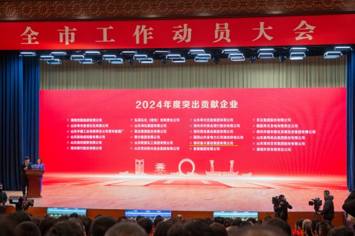 新春擂鼓走在前,乘勢而上挑大梁。2025年2月6日上午,全市工作動員大會召開。會議由市委副書記、市長劉建軍主持,市委書記劉運發(fā)表重要講話。會議對“2024年度突出貢獻企業(yè)”、“2024年度高成長產(chǎn)值倍增企業(yè)”等獎項進行了表揚。集團公司總裁朱九洲出席主會場會議并代表集團公司接受市委、市政府頒獎。?