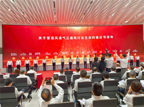 會(huì)議播放了建筑行業(yè)發(fā)展成果視頻《基石之力筑夢中國式現(xiàn)代化》;中國建筑董事長、黨組書記鄭學(xué)選進(jìn)行了主旨發(fā)言;倡議發(fā)起單位代表中鐵二局黨委副書記、總經(jīng)理張兵,中核集團(tuán)副總工程師、中國核建黨委書記、董事長陳寶珠,上海建工集團(tuán)黨委副書記、工會(huì)主席殷紅霞,濰坊昌大建設(shè)集團(tuán)董事長徐鵬強(qiáng)分別進(jìn)行了表態(tài)發(fā)言;中建一局黨委書記、董事長左強(qiáng)代表建筑企業(yè)宣讀了倡議書,中建二局、中國核建、中機(jī)建設(shè)、中國中冶、通用技術(shù)集團(tuán)新興公司、中國化學(xué)國際公司、中鐵電氣化局、中鐵建設(shè)、中交一公局集團(tuán)、中國電建水電七局、中國能建浙江火電、中國安能一局、北京城建、隧道股份、廣東建工控股、山東科達(dá)集團(tuán)、濰坊昌大建設(shè)集團(tuán)、興泰建設(shè)集團(tuán)領(lǐng)導(dǎo),共同按壓大屏手印圖案,聯(lián)合發(fā)布了《關(guān)于號召建筑行業(yè)黨組織和廣大黨員在營造風(fēng)清氣正行業(yè)環(huán)境中走在前作表率的倡議書》。