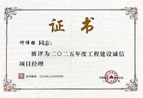昌大建設(shè)集團(tuán)憑借長期穩(wěn)定的誠信經(jīng)營與優(yōu)良的履約記錄,連續(xù)多年通過“AAA”級信用企業(yè)評審,并再次獲評“工程建設(shè)誠信典型企業(yè)”。集團(tuán)董事長徐鵬強(qiáng)被授予“工程建設(shè)誠信企業(yè)家”榮譽(yù)稱號。集團(tuán)旗下裝飾幕墻公司何偉強(qiáng)榮獲“工程建設(shè)誠信項(xiàng)目經(jīng)理”稱號。